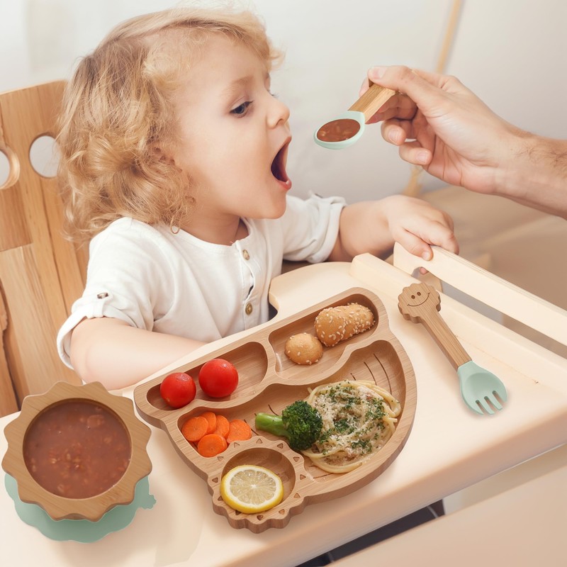 - Natural & Safe Materials — The MingHoYo Baby Feeding Set is made from premium, eco-friendly bamboo and food-grade silicone. Safe, non-toxic, and thoroughly tested for quality, it’s perfect for your baby’s everyday use. Designed to support baby-led weaning, this set encourages healthy eating habits from an early age.