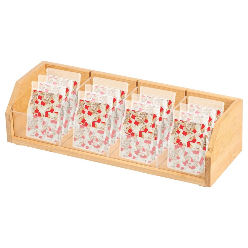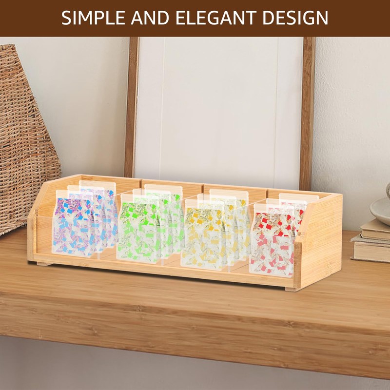 Bamboo Tea Bag Organizer Storage Box, 4 Compartments Bamboo Tea Box, Single Layer Stackable Tea Bag Holder, Teabox Station Display, Portable Tea Bag Holder for Home Office Spices