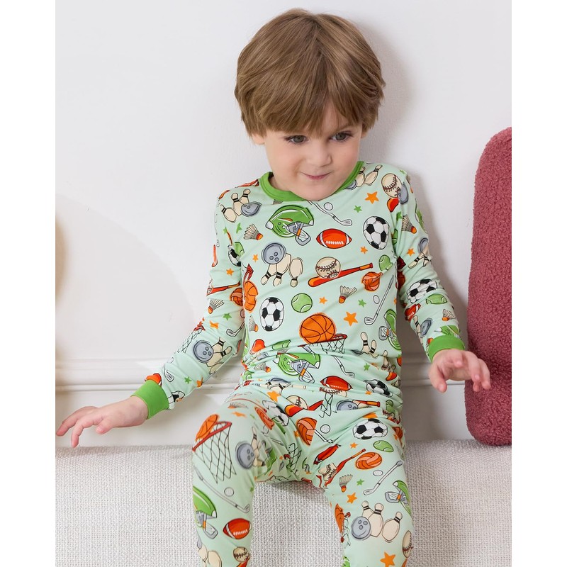 Bamboo Viscose Toddler Pajamas Boys Girls Kids Baby 2pcs Long-Sleeve Sport Pyjamas Set 5-6Y Snug fit Sleepwear Pjs