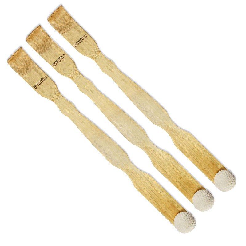 BambooMN 17 Inch Bamboo Wooden Back Scratchers Bongers for Itchy Stress Relief, 3 Pieces