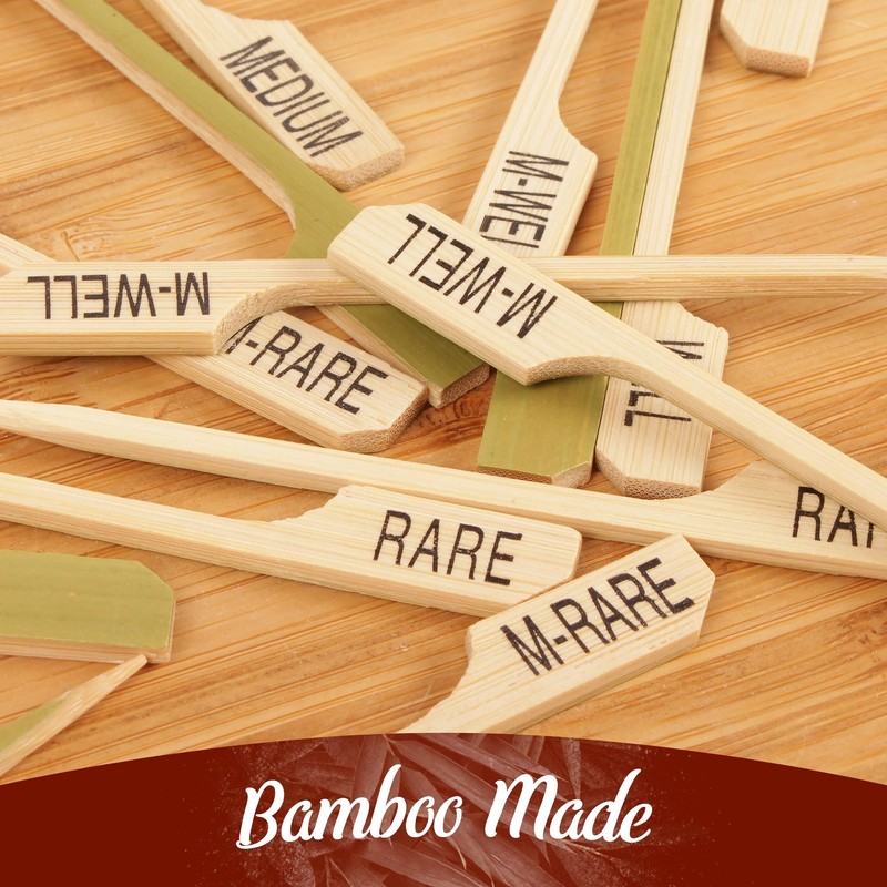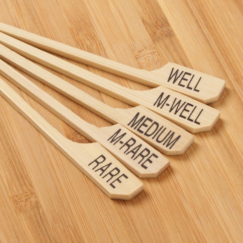 - EASY INIDICATION Used for marking food doneness, either in display cases or when plated. It's an easier way to let others know what is being served. With sharp points for easy piercing, serve sirloin steak, appetizer platters, and burgers with stylish ends.