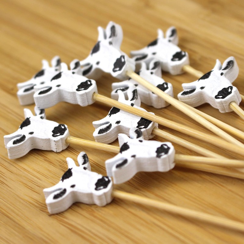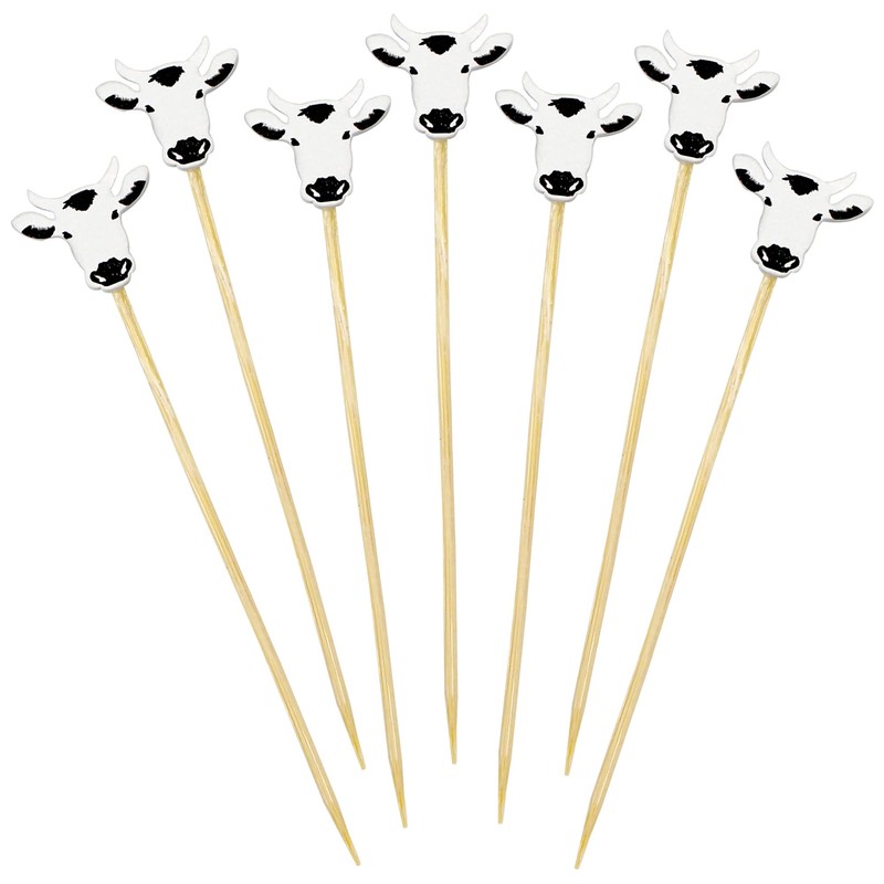 - COW END BAMBOO PICKS Decorative farm cow bamboo skewers swizzle toothpick sticks, approx 3.9 inch, 300 Pieces