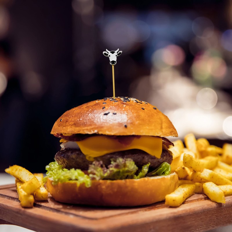 BambooMN 3.9 Inch Fancy Cow Cocktail Appetizers Bamboo Toothpick Picks, Stirrer Sticks for Fruit Party, Charcuterie Accessories and Drinks, 300 Pieces