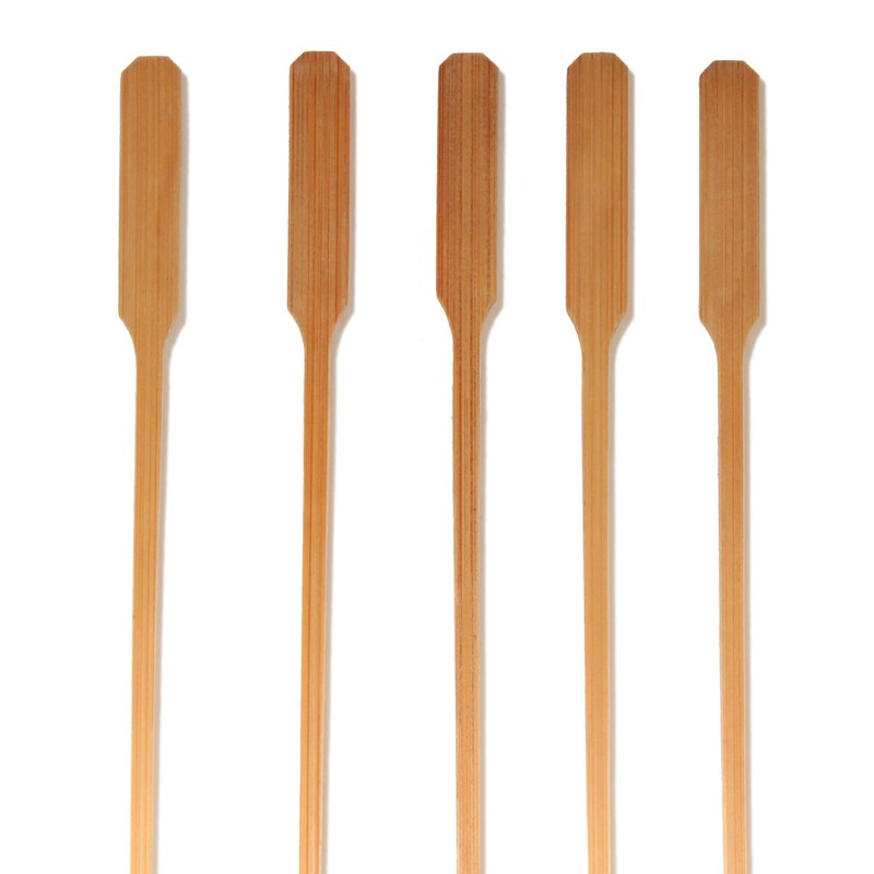 - SIZE AND AMOUNT: They come in a pack of 100 pieces. Approximately 9.8" (25cm) in length. Arrow paddle skewers in Carbonized Brown color.