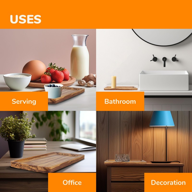 - USES Reusable and versatile. Can be used as a charcuterie appetizer plate and food platter. Or, protect your surfaces and use as a decorative centerpiece, or a counter vanity organizer. To ensure lifetime use, hand wash, then regularly coat with a food-safe mineral oil