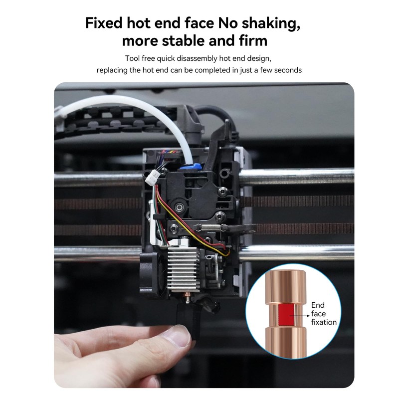 • ใ€โ€Œโ€Œโ€Œโ€Œ๐— ๐—ผ๐—ฑ๐˜‚๐—น๐—ฎ๐—ฟ ๐—ค๐˜‚๐—ถ๐—ฐ๐—ธ-๐—ฅ๐—ฒ๐—น๐—ฒ๐—ฎ๐˜€๐—ฒ ๐— ๐—ฎ๐—ถ๐—ป๐˜๐—ฒ๐—ป๐—ฎ๐—ป๐—ฐ๐—ฒ ๐——๐—ฒ๐˜€๐—ถ๐—ด๐—ปโ€Œใ€‘Features a tool-free quick-swap hotend with an upgraded heatbreak structure, including a stepped limit interface at the heatsink connection to prevent rotation or loosening. The hardened steel nozzle is detachable and compatible with Bambu Lab X1/P1P removable nozzles.