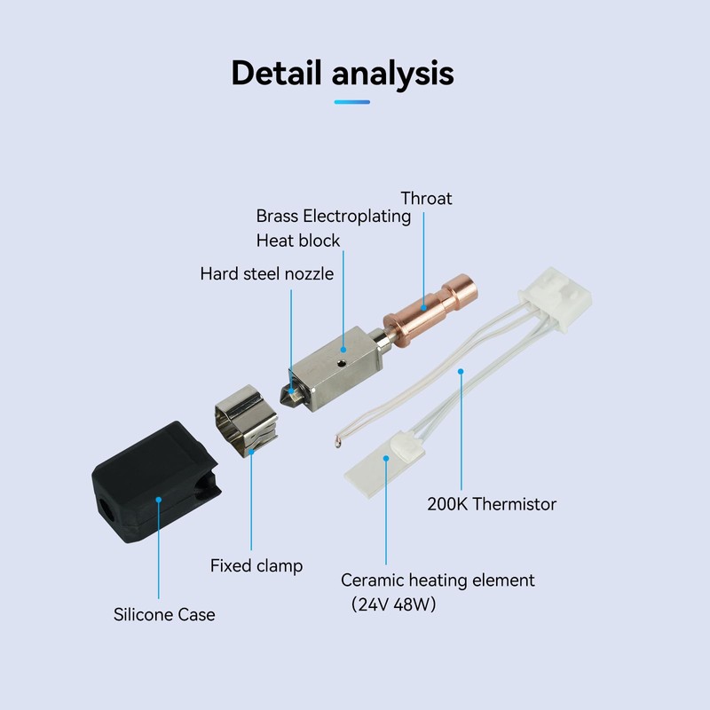 • ใ€โ€Œโ€Œโ€Œ๐—น๐—ถ๐—ด๐—ต๐˜๐˜„๐—ฒ๐—ถ๐—ด๐—ต๐˜ ๐—ฐ๐—ผ๐—ป๐˜€๐˜๐—ฟ๐˜‚๐—ฐ๐˜๐—ถ๐—ผ๐—ปใ€‘The optimized titanium alloy heatbreak integrates thermal and cold zones to prevent material expansion and clogs caused by heat creep. Its lightweight design reduces printhead inertia, enhancing precision during high-speed printing.