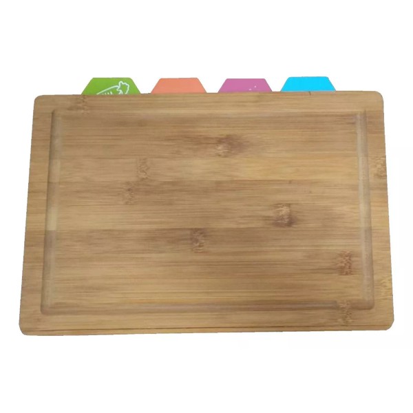 Set de 5 Tablas De Picar, 1 de Madera 100% Bambú y 4 de plástico libre de BPA para cada tipo de alimento: verduras, pollo, carnes, pescado. Dimensiones: 34x24x2 cm | Ad-03