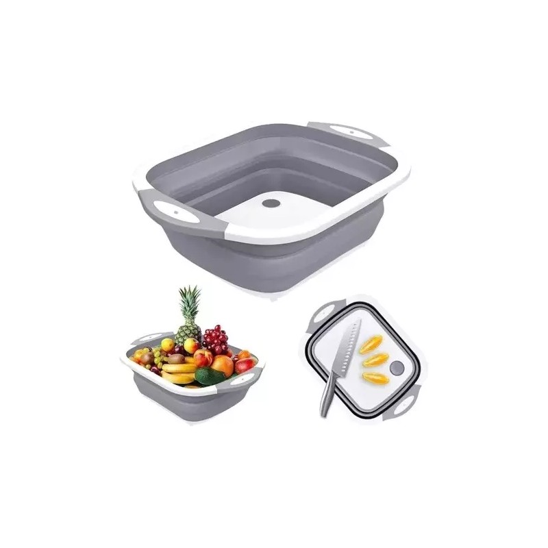 • Cuando se despliega se puede utilizar de diferentes maneras, ya sea meramente como cesta o escurridor, cuenta con un tapón que cubre un amplio agujero diseñado para un mejor drenado.