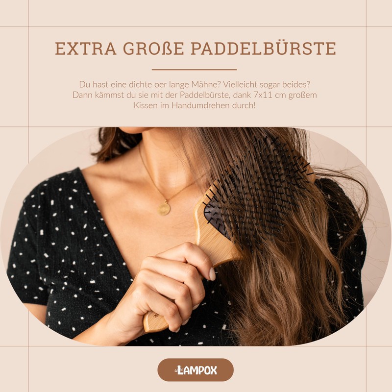 - 😇 BAMBUS HAARBÜRSTE / Entwirrbürste: Schonendes Entwirren und Kämmen des Haares. Die weichen Stifte streicheln deine Kopfhaut und entwirren das Haar. Der Griff ist hergestellt aus natürlichem, schnell nachwachsendem Holz. Hochwertig, nachhaltig und umweltfreundlich