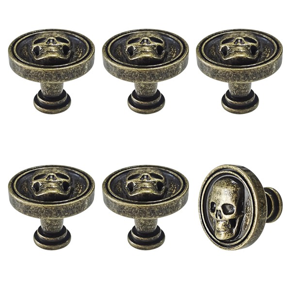 BAMI-LEE House Vintage Skull Knob, 6 pcs Single Hole Cabinets Pulls for Drawer, Wardrobes, Bookcases, Dresser, Closets (Bronze)