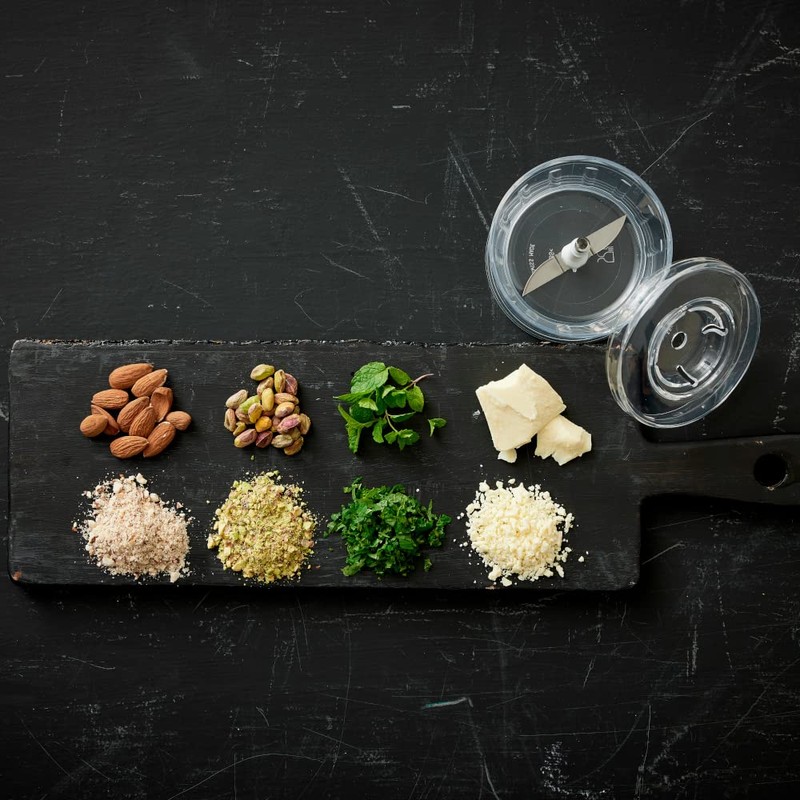 - HIGH-QUALITY CHOPPER ATTACHMENT: The stainless-steel double blade effortlessly processes nuts, berries, grains and much more. Simply put your ingredients in the container and place your bamix stick blender on top.