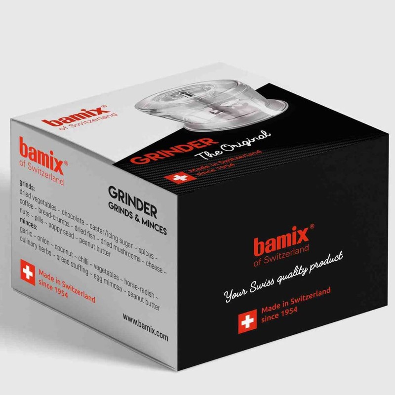 - ATTACHMENT for all bamix STICK BLENDERS with an OUTPUT of LESS THAN 250 WATTS: The bamix grinder is the perfect accessory for your bamix stick blender. It transforms your bamix handheld blender into a high-power universal chopper. An original bamix stick blender is required for use.