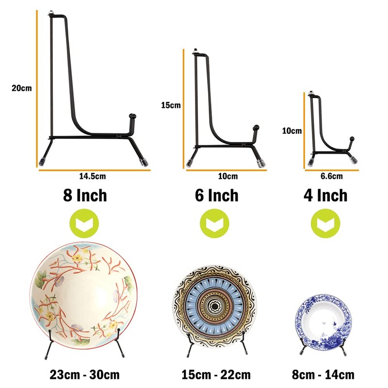 BamLue 6 Pack 3 Size Iron Display Stand, Black Wire Iron Easel Plate Holder, Plate Stand for Displaying Photos, Decorating Plates, Books, Cooking, Art (4, 6, 8 inch)