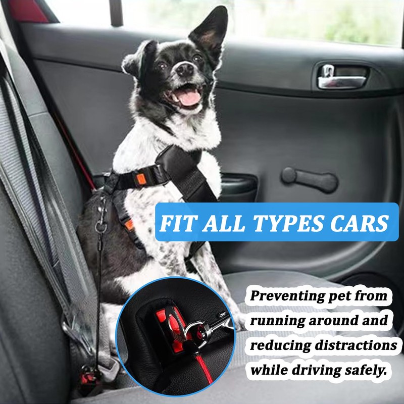 - Multi-Connecting Way -- This pet car seatbelt dog leash can be attached directly to your car's built in latch bars or car vehicles seat belt buckle. One swivel clip is fastened on the dog's collar or harness, and another is clipped to one of 4 latch bars,found in the seat creases in your car’s back seat or clipped to headrest rod on the back seat or to the car trunk.