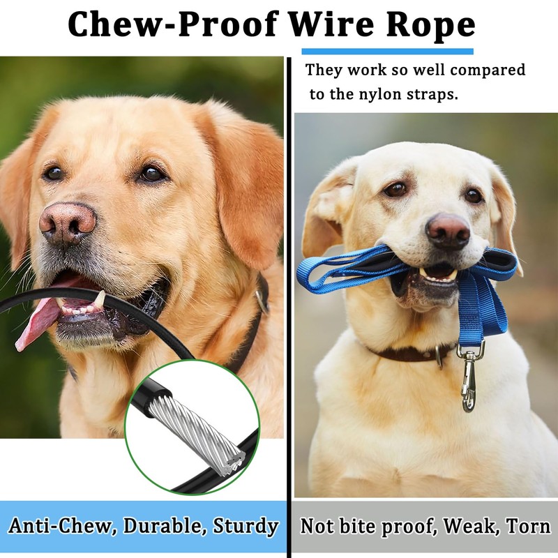 - Chew Proof and Durable -- Is your dog a chewer? BamLue seat belt is made from ultra-strong 4mm diameter coated wire rope preventing from biting the rope. It is chew proof so it won't succumb to even the most avid of chewers or teething puppies. They work so well compared to the nylon straps.