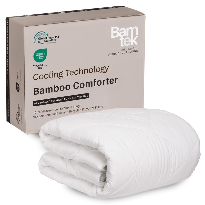 - Viscose derived from Bamboo Comfort: 100% viscose from bamboo cooling comforter; Soft, breathable, featuring corner ties and box stitching for a secure fit and flawless appearance.
