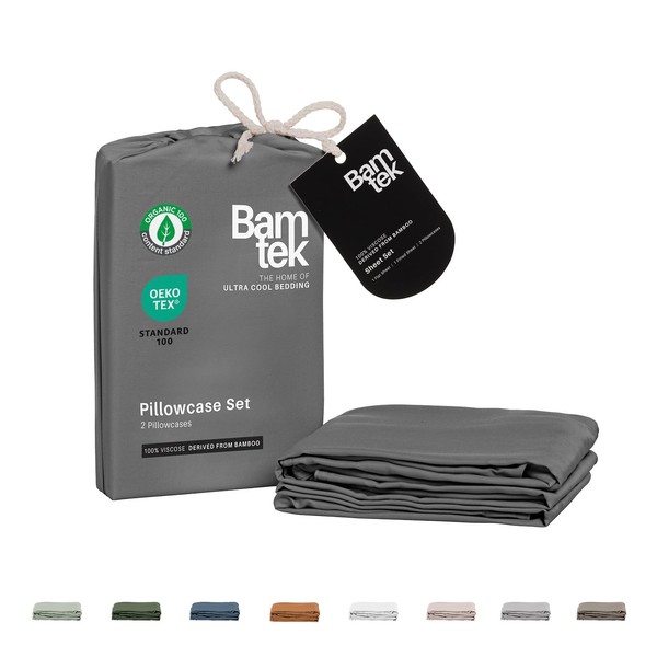 Bamtek Pillow Cases Queen Size Set of 2 Pillowcases 100% Viscose Derived from Bamboo Cooling Pillowcases, Soft & Breathable Pillow Case with Envelope Closure, Grey Pillow Cases (Steel)