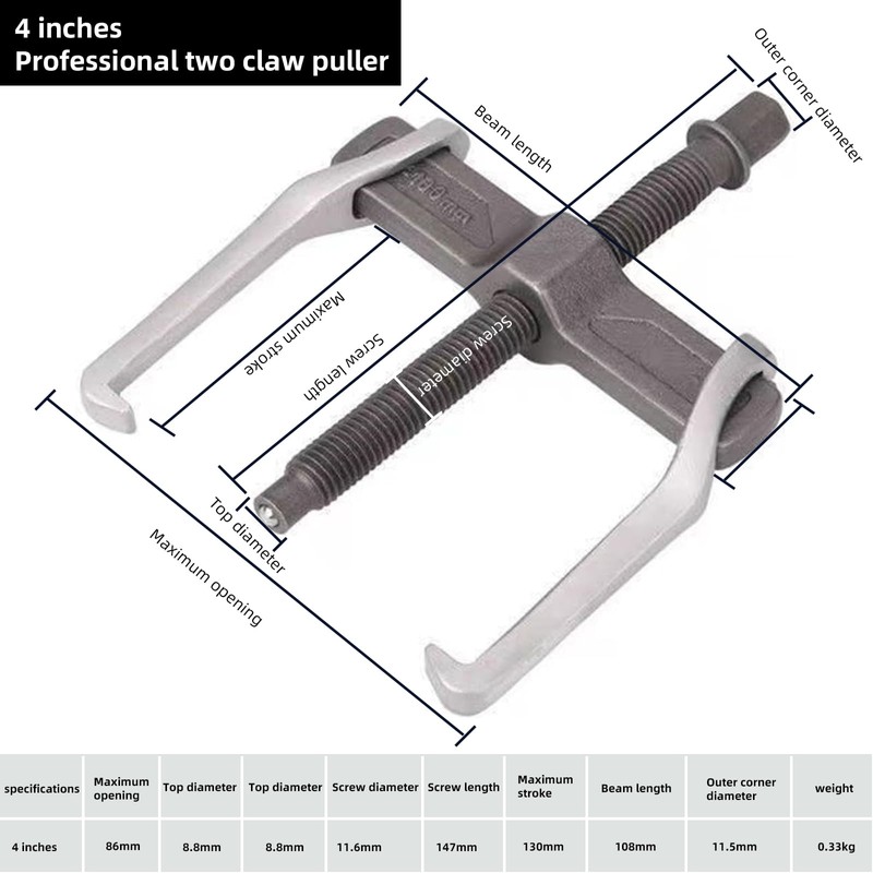 Product Name: 4-inch self-locking two-claw puller multifunctional special bearing removal tool Material: Carbon Steel