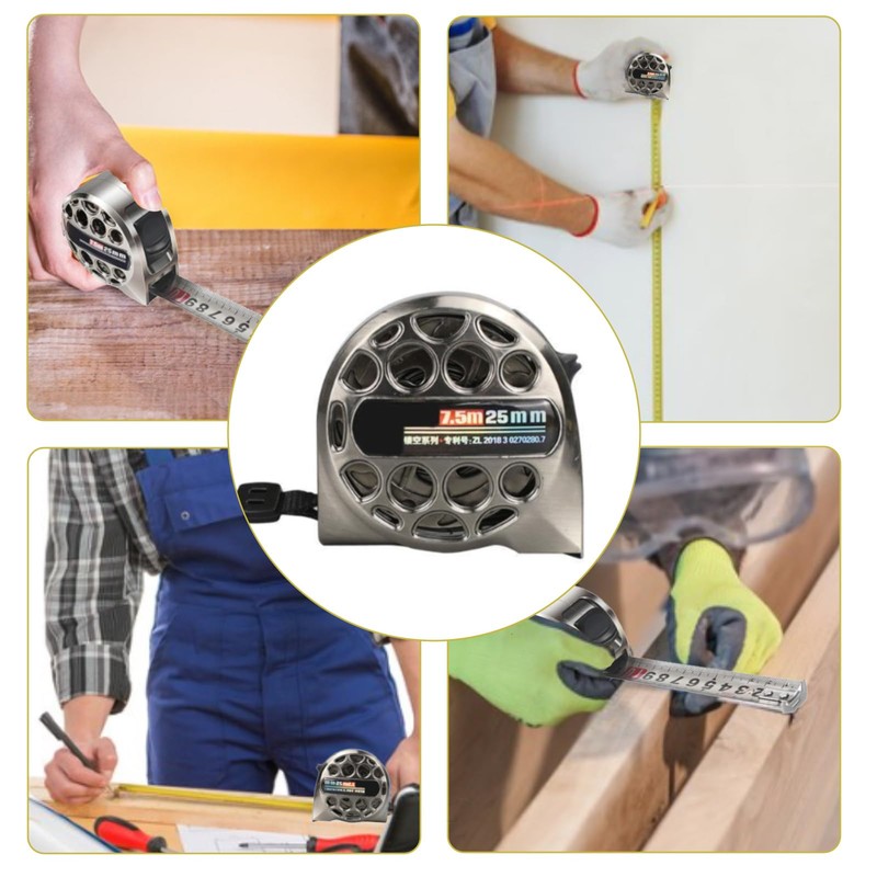 - 【Durable material】Stainless steel tape measure 7.5m, 25mm is made of high-strength stainless steel plating design, waterproof and rust-proof, anti-fall and wear-resistant, leaving no marks. Note: Due to the sharp edges of the tape measure, it is recommended to wear gloves when using it.