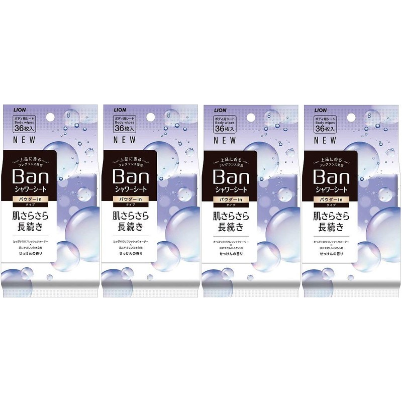 - Ban Refreshing Shower Sheet, Powder in Type, Soap Scent, 36 Sheets x 4 Packs