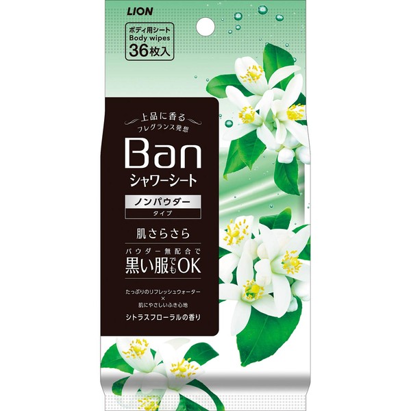 Ban Refreshing Shower Sheet, Non-Powder Type, Citrus Floral Scent, 36 Sheets x 1