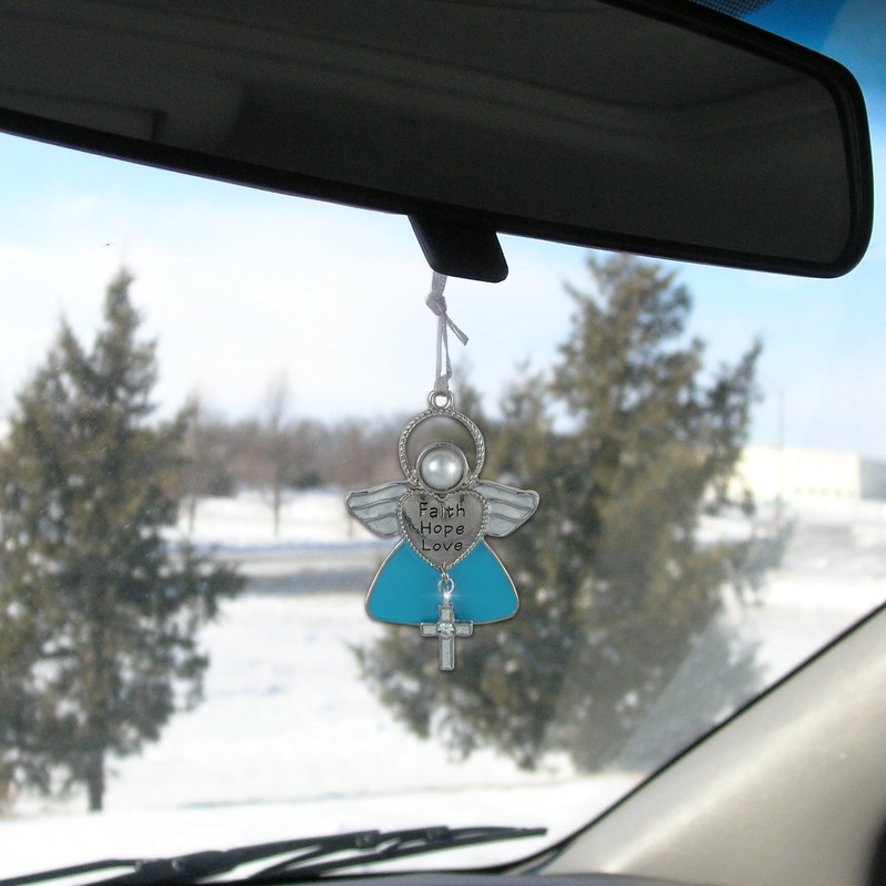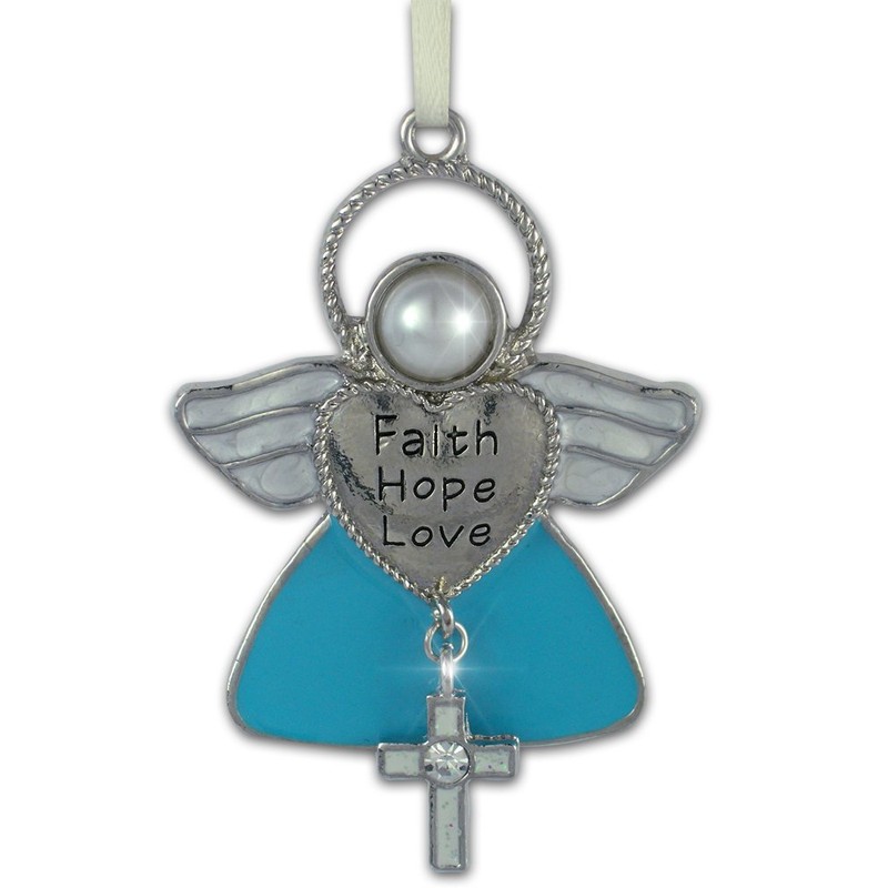 BANBERRY DESIGNS Faith Hope Love Hanging Ornament Angel with Cross Charm and Heart Stand