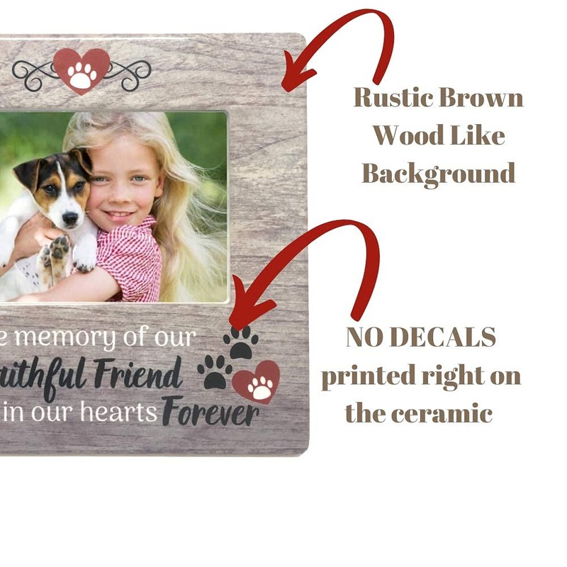 - The memory of our FAITHFUL FRIEND will live in our hearts forever. Pretty wood looking frame (the frame is made of ceramic) with sublimation printing.