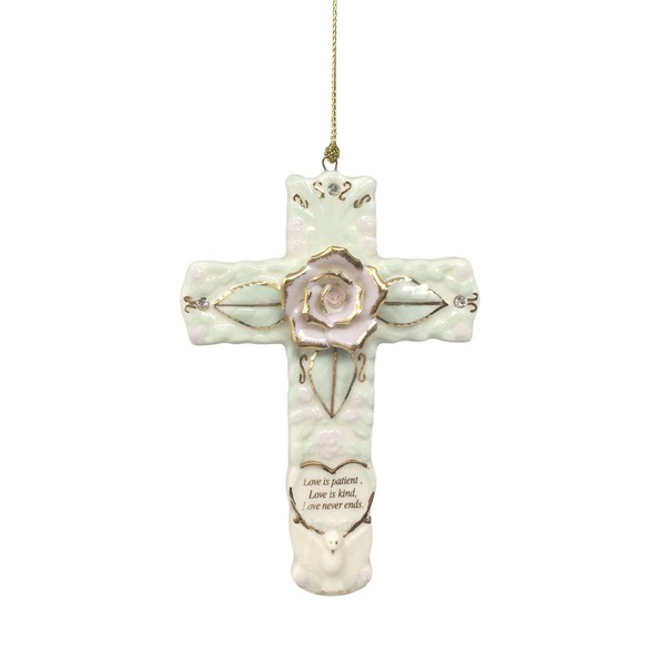 BANBERRY DESIGNS Inspirational Cross - Porcelain with Message Printed on the Cross - 'Love is patient, Luv is kind, Love Never Ends' - Wall Hanging - 6" H