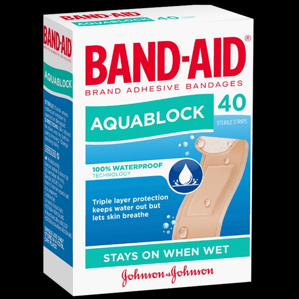 Band-Aid Brand Adhesive Bandages Aquablock Sterile Strips with 100% waterproof technology, stay on when wet.