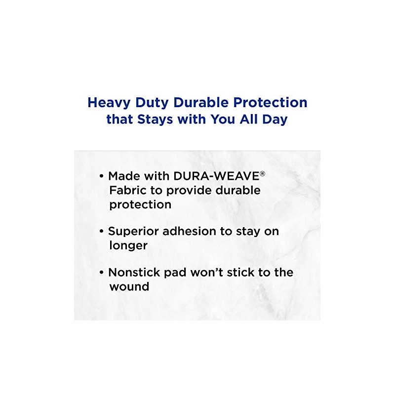 - Sterile bandages feature Dura-Weave heavy-duty fabric with a strong adhesive to stay on up to 24 hours