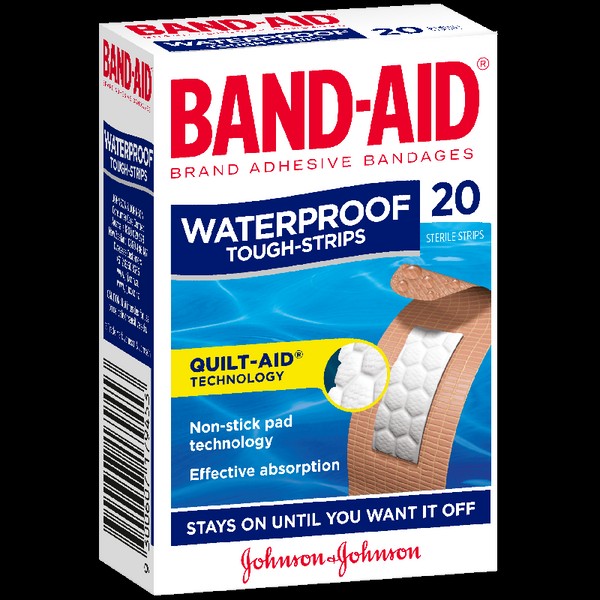 Band-Aid Brand Adhesive Bandages Waterproof Tough-Strips feature Quilt-Aid Technology. Non-Stick Pad Technology and effective absorption.