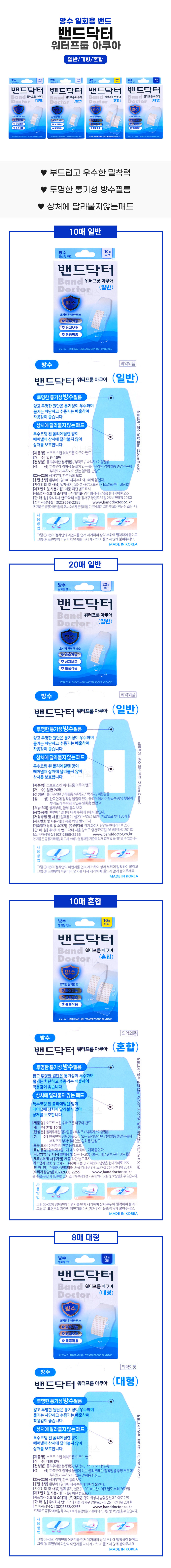 Band Doctor Waterproof Aqua (Regular/Large/Mixed) Normal (20 sheets) 5ea