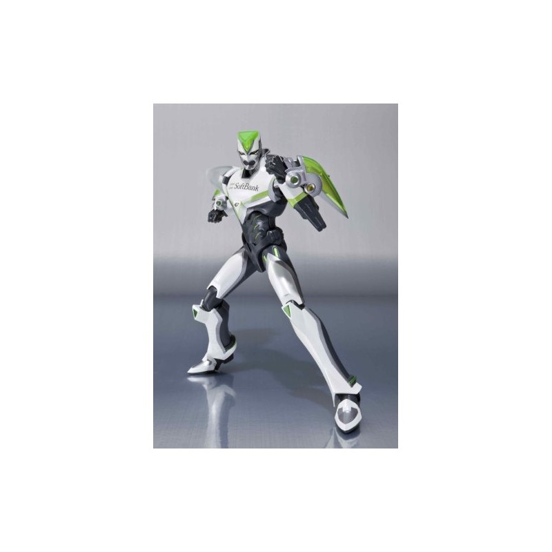 Tiger&Bunny, a revolutionary new anime featuring corporate sponsored heroes in power suits joins the SHFiguarts series with one of the protagonists Wild Tiger. Action figure is features detailed mechanics and clear parts for enhanced realism. Japan mobile phone carrier SoftBank corporate sponsor logo also featured. Figure is rendered with Diecast, ABS, PVC, and POM parts for superior weight, detail, durability, and articulation. Wild Tiger figure set includes interchangeable hand parts, GOOD LUCK mode right hand parts, Wire Gun parts (left/right), and special display stand.