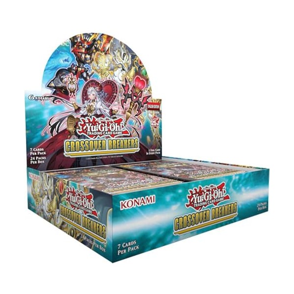 Get ready to jump into the action with multiple new and unique themes in Crossover Breakers! This set contains multiple brand-new themes that introduce innovative strategies and will make for exciting Duels! Whether you are looking for something cool, cute, or a really big Dragon, Crossover Breakers has something for every kind of Duelist, and includes cards available as Collector's Rares and Quarter Century Secret Rares. 24 booster packs per box, 7 random cards per pack.