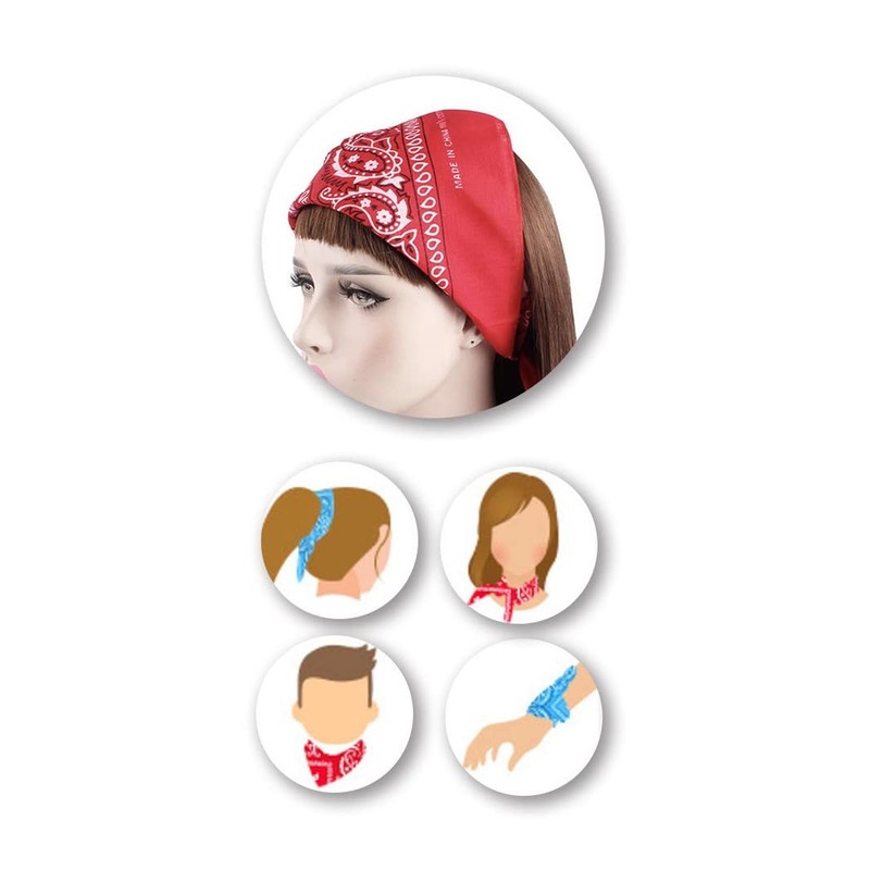 - Size: the bandana measures approx. 54 x 54 cm, which is large enough to fit your head. Can also be used as a face mask. Simply fold into a triangle to tie the face and voila!