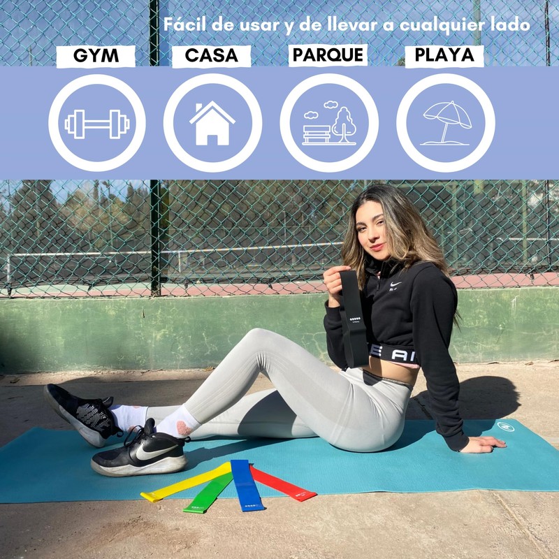 - 🏋️♂️Entrenamiento Versátil: Ejercicios de fuerza, flexibilidad y tonificación en casa o en el gimnasio, todo con nuestras bandas elásticas de resistencia.