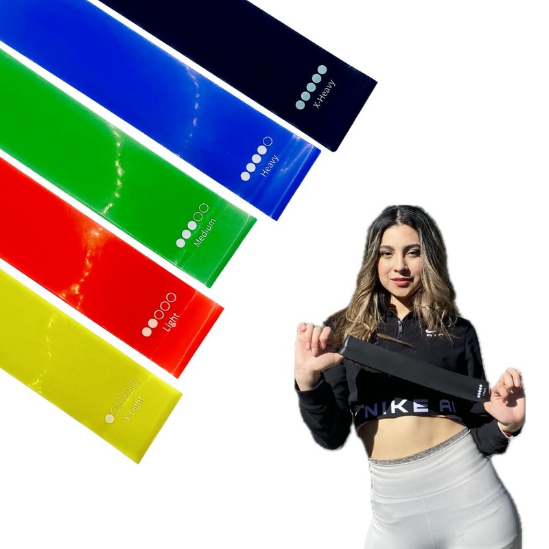 Bandas elásticas de Resistencia - 5 Niveles - Entrenamientos en casa - Pilates - para casa - Portátiles - Niveles Variados - Todas Las Edades - Ejercicios Variados - Gym - Yoga - Ejercicio - Fitness