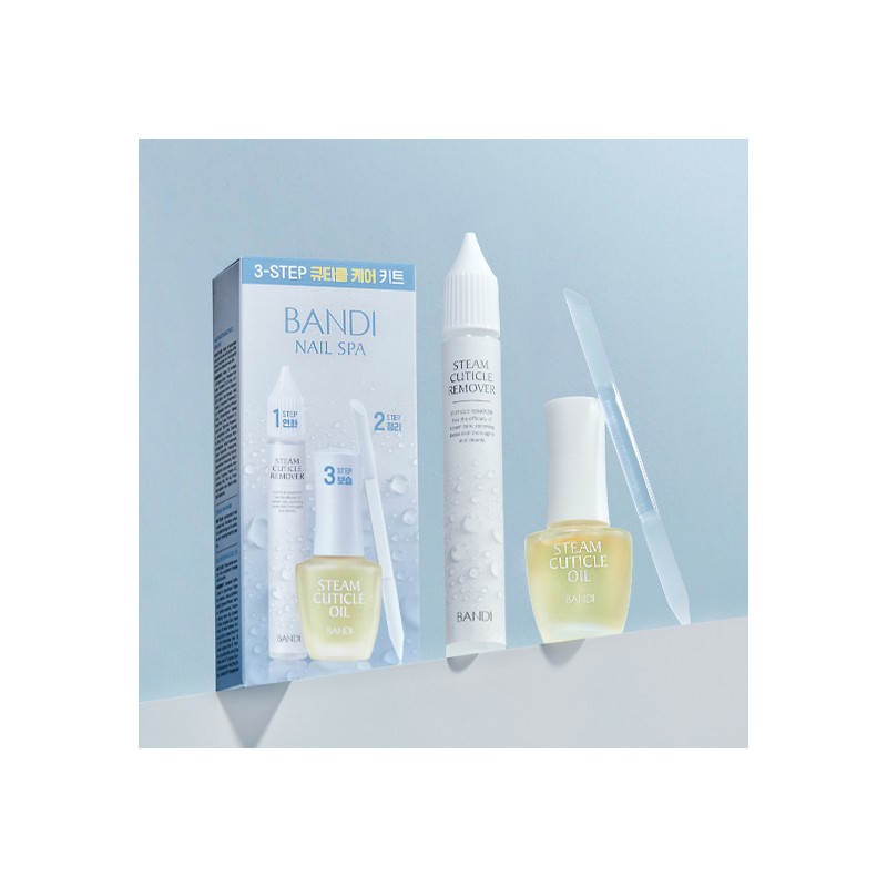 [Cuticle care remover] BANDI’s unique knowhow of hot spring water steam easily removes dead skin cells on nail with soft and moisturizing effect. Provides optimal viscosity to remove loose skin. Provides soft and moisturizing loose skin of cuticle. [Crystal pen pusher] Multi-design complete with 3 different functions. The ultra fine crystals provide clean care. The compact product size is perfect for a pouch. A safe fine pusher that can push dead skin cells. [Cuticle oil] 100% satisfaction in 2-week rough cuticle improvement, 2-week cuticle moisturizing, and clinical trial result. Contains panthenol and ceramide to improve skin elasticity and glow. A certified vegan product that contains 10 kinds of seed oil. Contains pure golden olive to provide high concentrated nutrition. Oil that provides nutrition, moisturizing, and improves skin barrier of cuticles.
