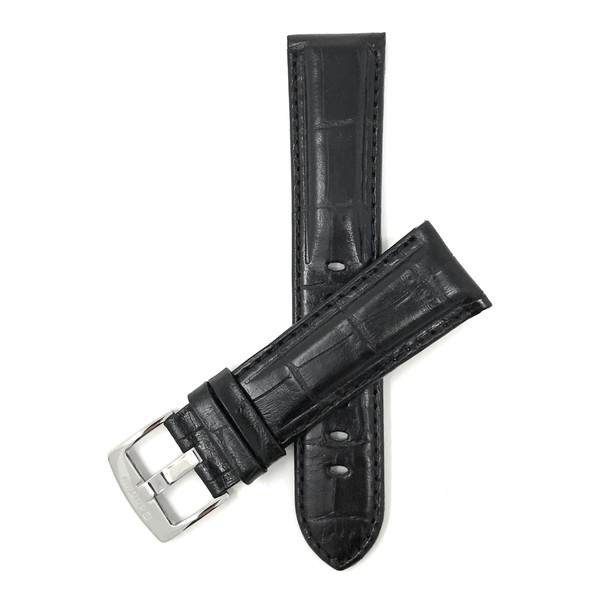 Bandini 18mm Mens Italian Leather Watch Band Strap - Black - Alligator Pattern