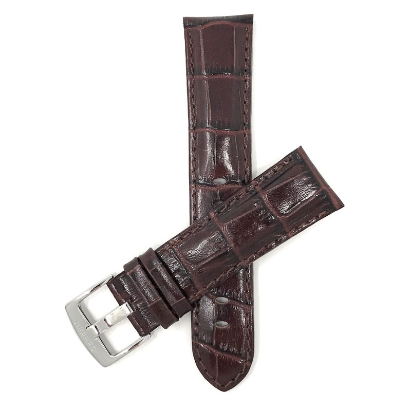 - Brown 22mm Watch Strap Band, Leather, Alligator Pattern, Glossy