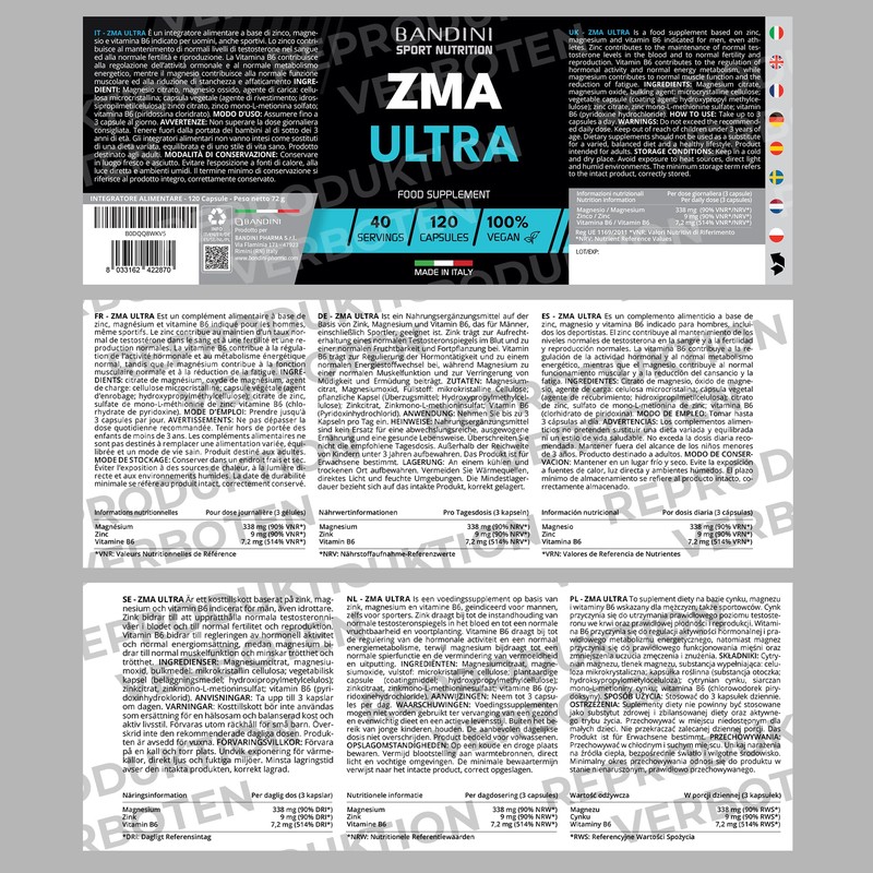 BANDINI Bandini? ZMA ULTRA Extra High Dose Complex with Magnesium, Zinc & Vitamin B6, Premium: With 2 magnesium compounds, muscle function, energy booster, no additives, vegan, GMO-free, 120 Capsules