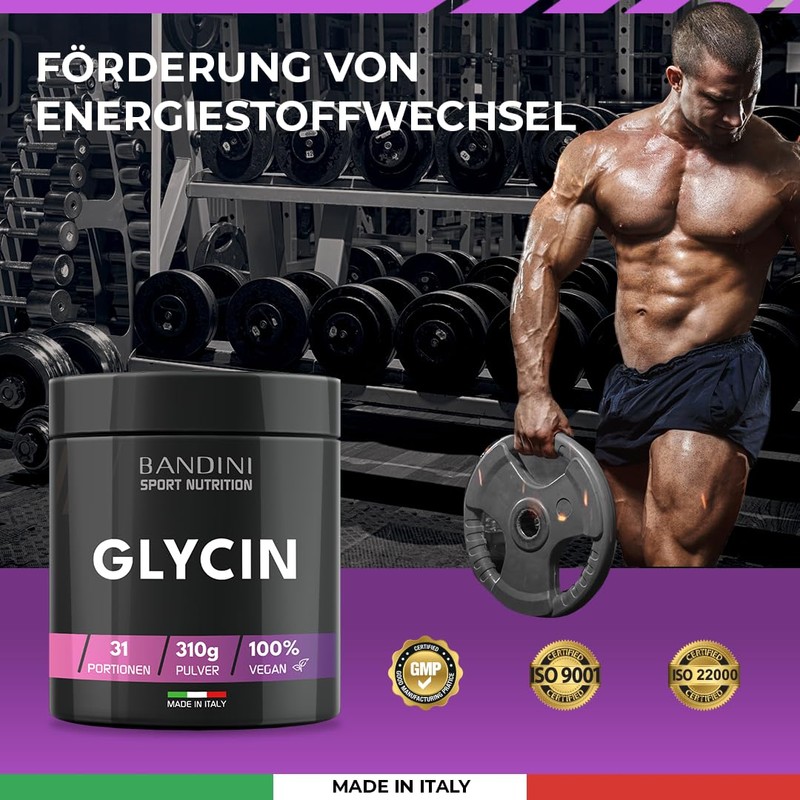 Bandini® GLYCIN Powder, 100% Pure L-Glycine Amino Acid, Premium Quality Glycine Powder with Measuring Spoon, Alternative to Capsules, For Joints & Sleep Improvement, No Additives, Vegan, 310 g