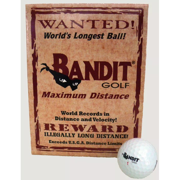 The Bandit Maximum Distance Golf Ball is specially designed to violate the rules and specifications that limit the overall distance of a golf ball as set forth by golfs governing bodies, the United States Golf Association and the Royal and Ancient Golf Club. The high-energy super reactive core and aerodynamic dimple design provide the perfect combination for MORE CARRY, MORE ROLL and MAXIMUM DISTANCE!For Additional Product Information Visit the banditgolfusa website!