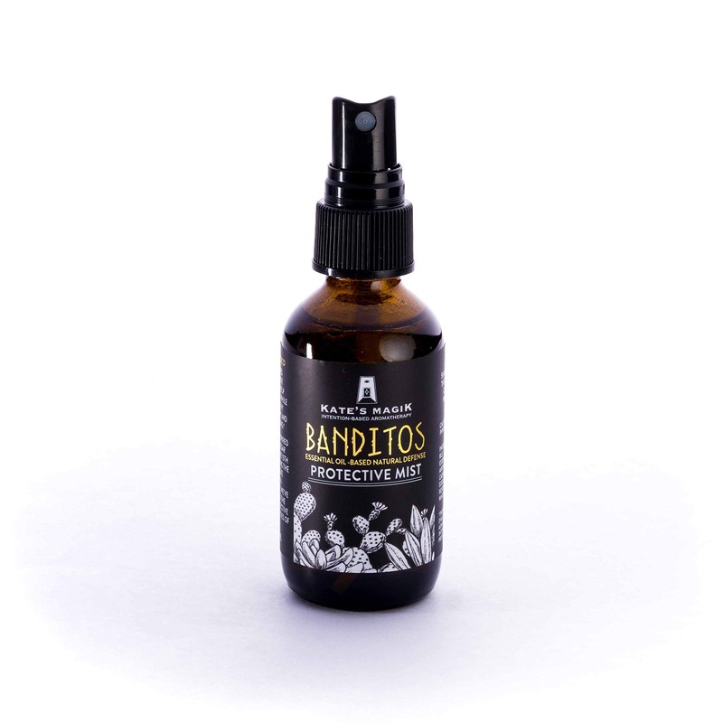 Banditos Protective Mist features therapeutic-grade essential oils suspended in distilled water and organic vegetable glycerin to help guard and protect while supporting healthy immune, respiratory and circulatory systems.* Our formula was inspired by Four Thieves Vinegar used by bandits in the 15th century when robbing the sick during plague outbreaks. For a southwestern twist, we’ve further enhanced the blend with the protective and cleansing qualities of White Sage. Shake well and spray around the body and living spaces to cleanse, purify & protect while supporting healthy immune function. Ideal for use during travel. Avoid contact with eyes, inner ears and sensitive areas.