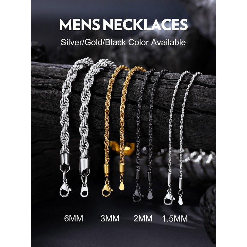 - ✦✦ Not Cheap Trash, Don't Worry ✦✦ There are many similar styles, but our texture and quality are unique. Most of slim rope chains are easy to break, the clasps are easy to tear or loose, we absorbed the experience, welded the rings on the chain, and improved the closure, luster is also definitely charming.