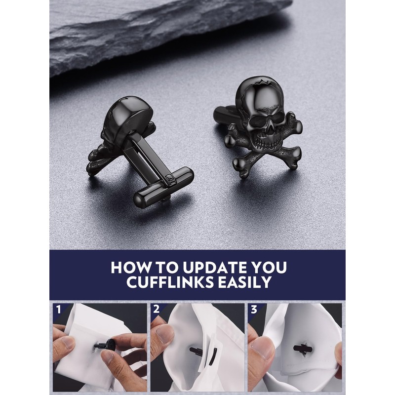 - Design - Skull cufflinks fit any formal or casual suit. Cufflink goes well with your shirts, tuxedos, suits, ties and vest combination and will never go out of style.