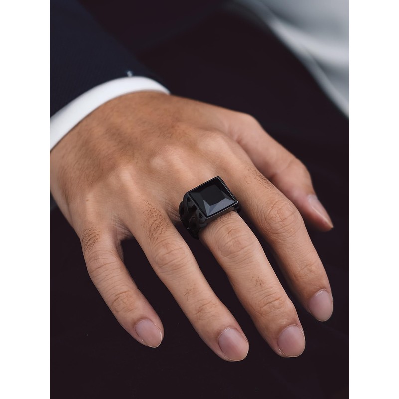 Bandmax Gemstone Signet Rings for Men Black Onyx Statement Ring Wedding Ring Size O