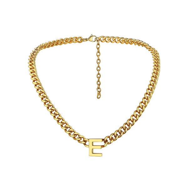 Bandmax Gold Initial E Pendant Necklace for Men Women 7MM Wide Curb Link Chain Choker 18 Inch Cuban Necklace with Letter E Gift for Husband Father Son