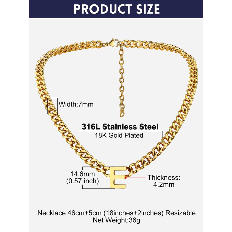 - ✦ Dimension & Size ✦ Letter Pendant: Height 14.6MM, Thickness 2MM; Cuban Chain: Length 18Inch+2Inch Extra Link, Wide 7MM; Net Weight: 36g. Letter from A-Z, Silver/Gold/Black three color available.